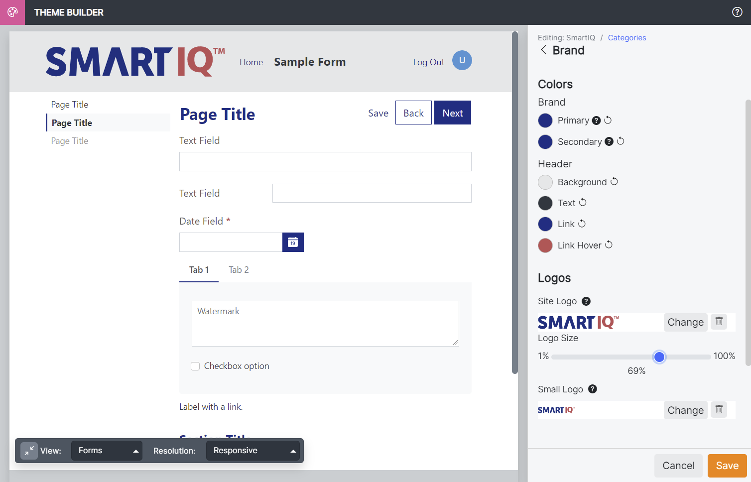 In addition to raster image types like PNG and JPG, SmartIQ now supports uploading an SVG for the Theme Builder main header logo.