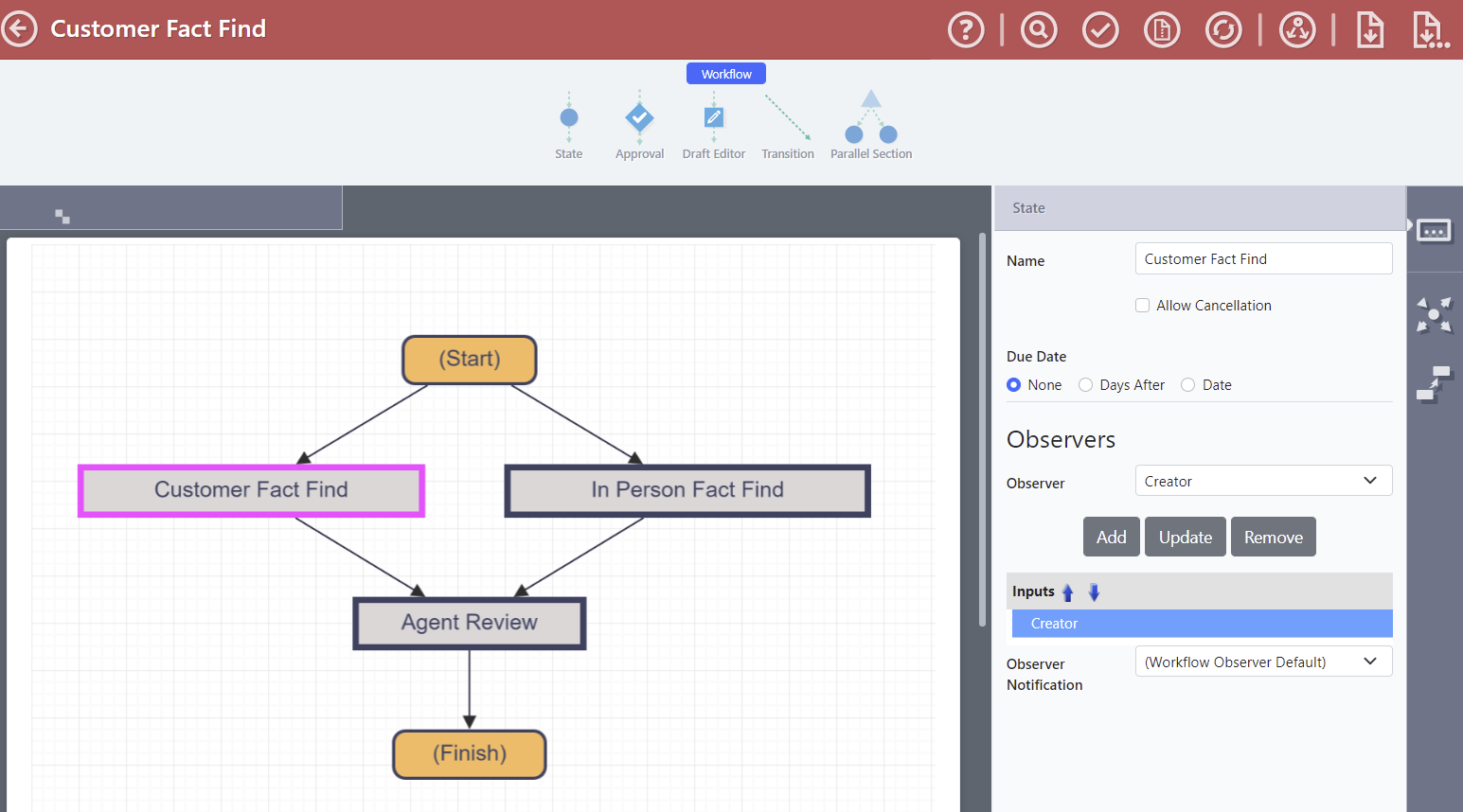 Designers can now include any number of stakeholders as workflow observers, a new passive role that allows someone to monitor the progress of a workflow.
