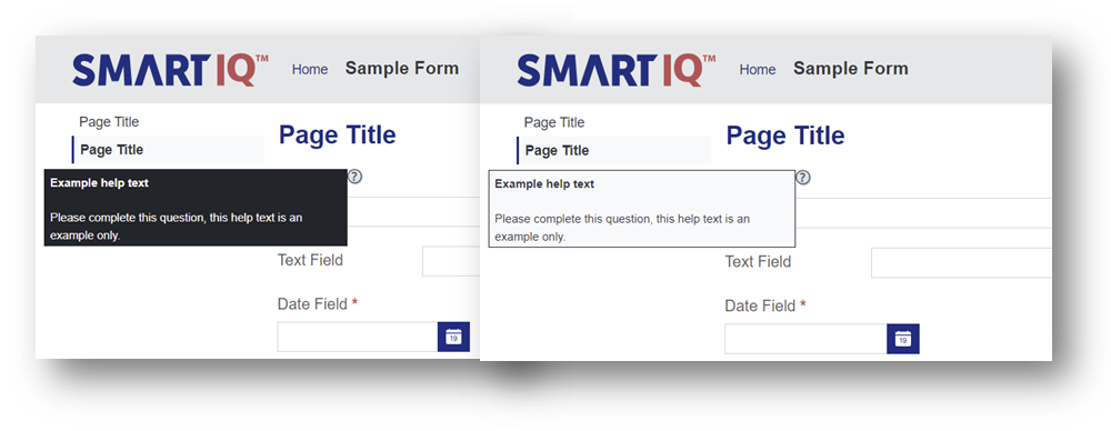 Styling of the help text boxes used at the question level was also delivered in this release. Selecting from a light or dark option to reflect the overall aesthetic of a theme.