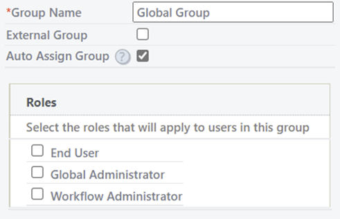 A new option has been added to groups to mark them as ‘Auto Assigned’, which will be set by default for built-in system groups. This allows customers the ability to configure exactly which groups are assigned for new users regardless of whether built-in groups or not.
